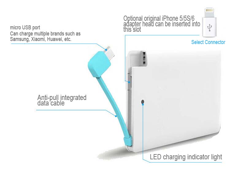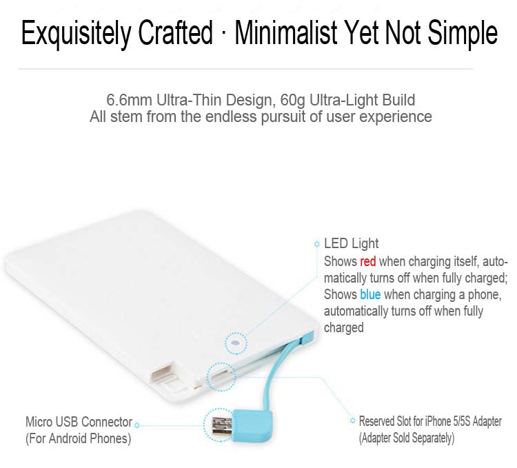 Card Power Bank 4000mAh, Business Card Portable Charger 2500mAh, Double-Sided Custom Logo & Pattern Printable