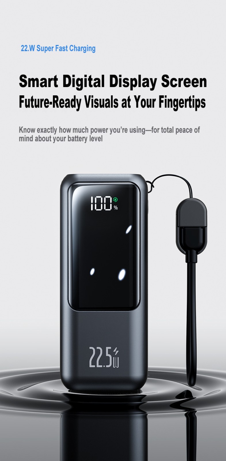 20000mAh Mini Power Bank, Large Capacity, 22.5W Super Fast Charging, Digital Display, Wholesale Phone Portable Charger