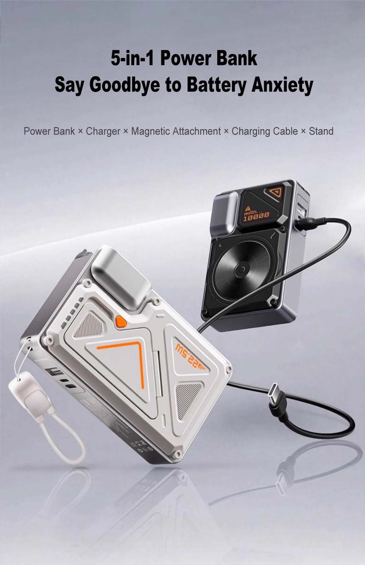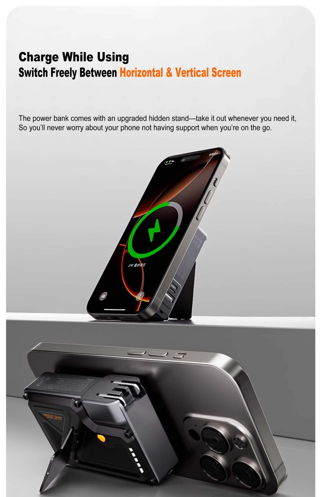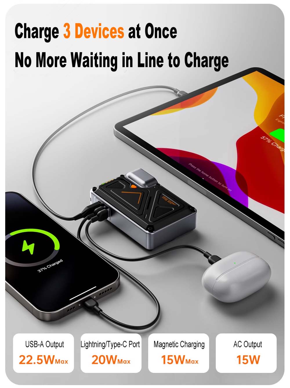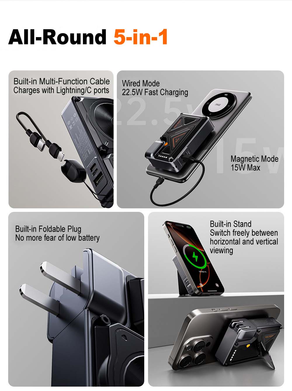 3C Certified Power Bank, Large Capacity, Fast Charging, Built-in Cables & AC Plug, 6-in-1 Portable Wireless Magnetic Charger