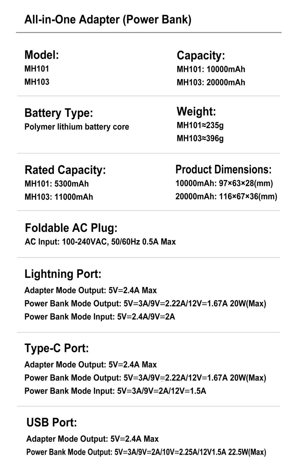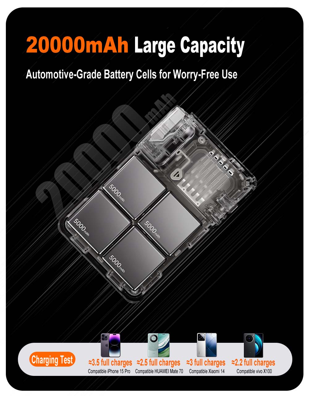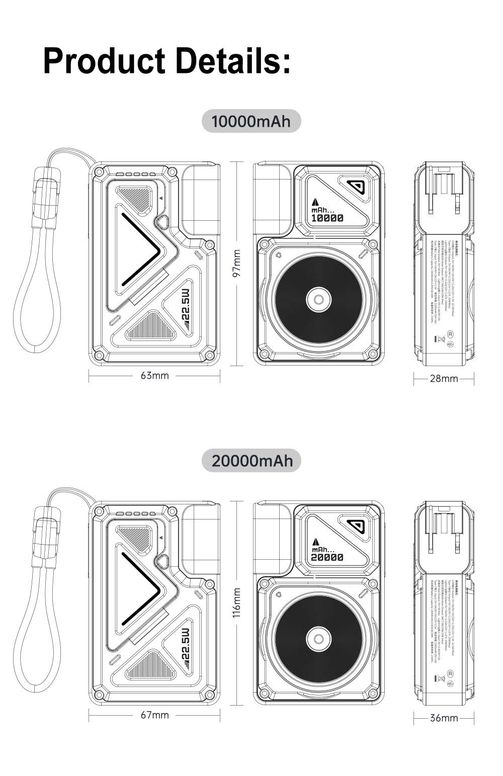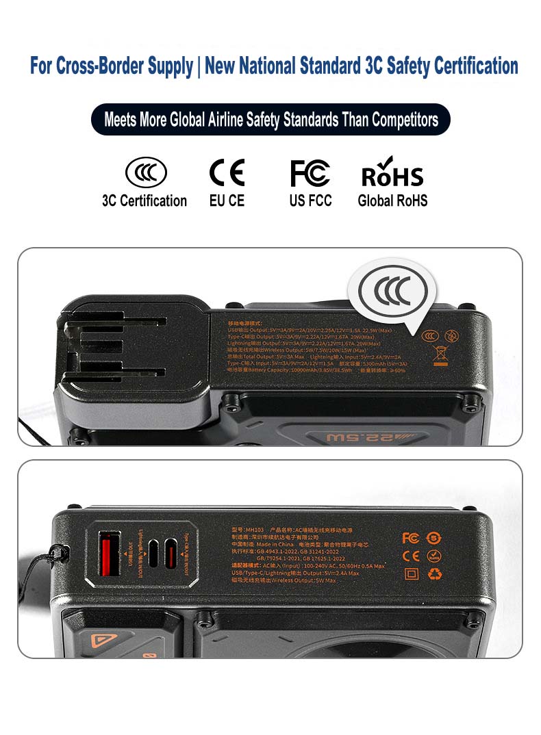 3C Certified Power Bank, Large Capacity, Fast Charging, Built-in Cables & AC Plug, 6-in-1 Portable Wireless Magnetic Charger