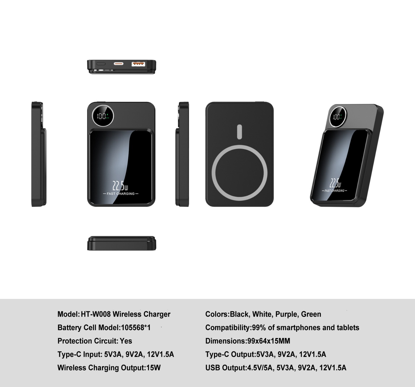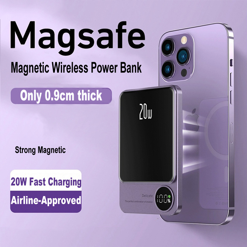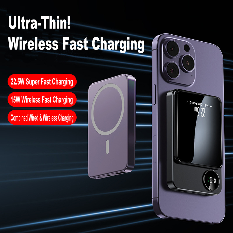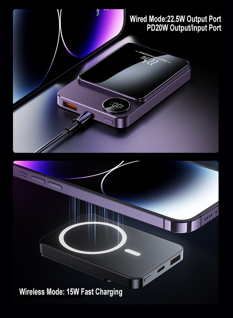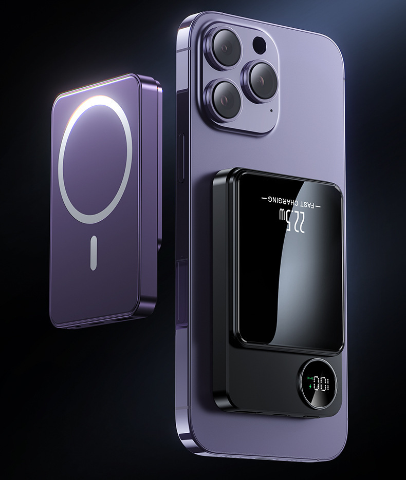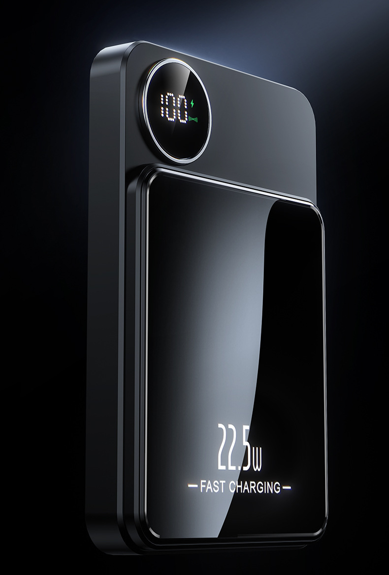 Magnetic Wireless Fast Charging Power Bank, Digital Display, Compact & Portable Wireless Charger