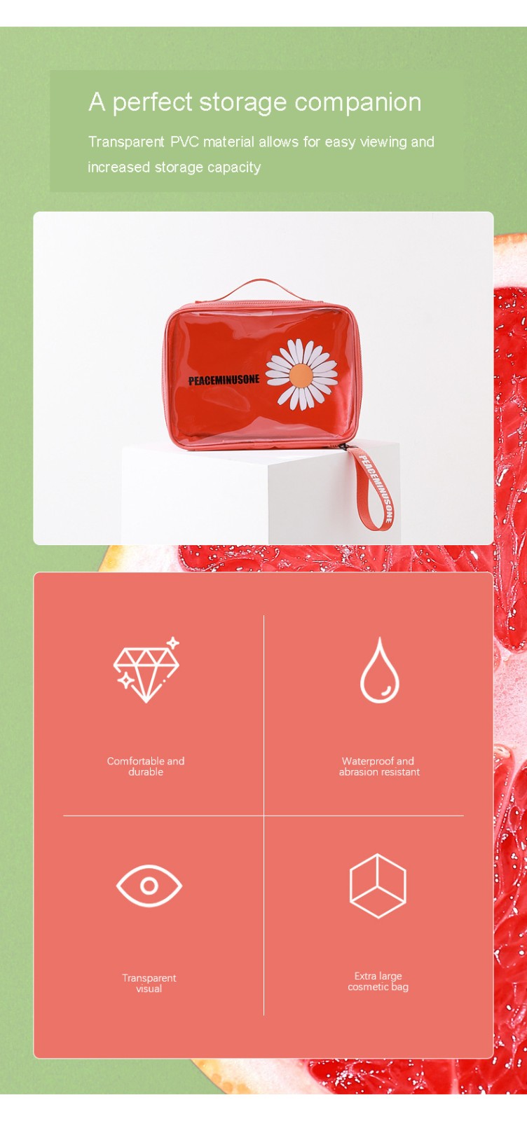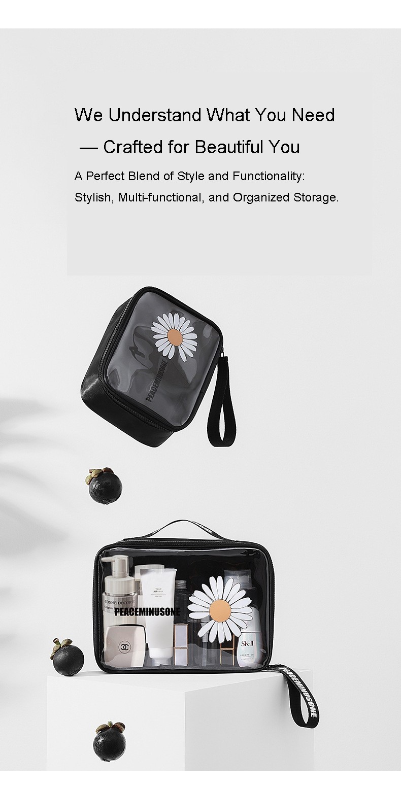 PVC Daisy Cosmetic Bag for Women, Multi-Functional Transparent Waterproof Travel Toiletry Organizer