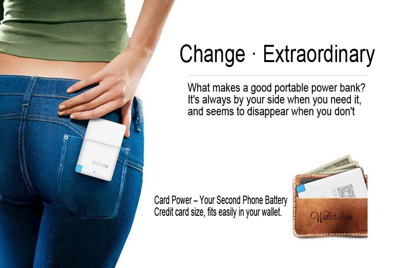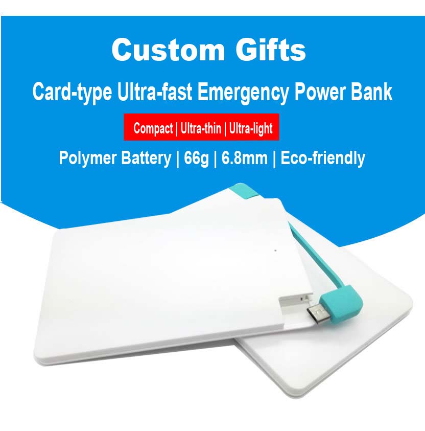 Card Power Bank 4000mAh, Business Card Portable Charger 2500mAh, Double-Sided Custom Logo & Pattern Printable