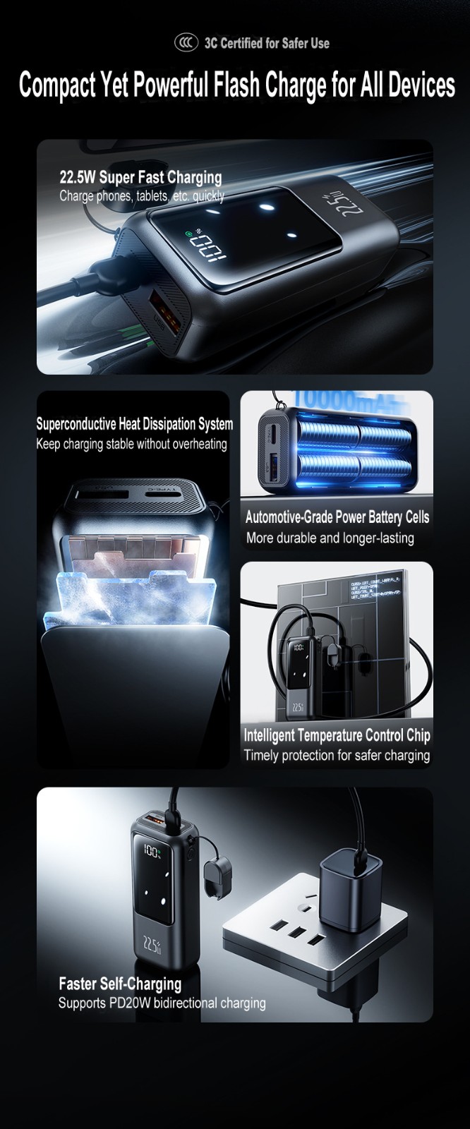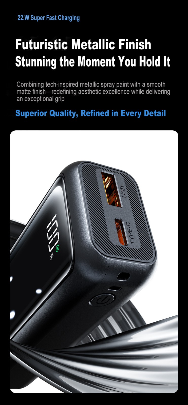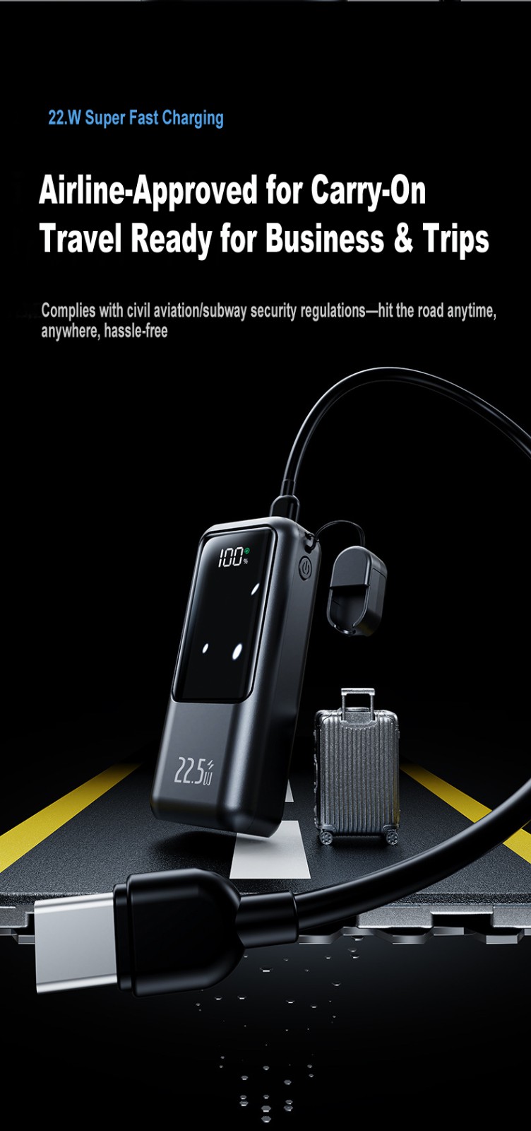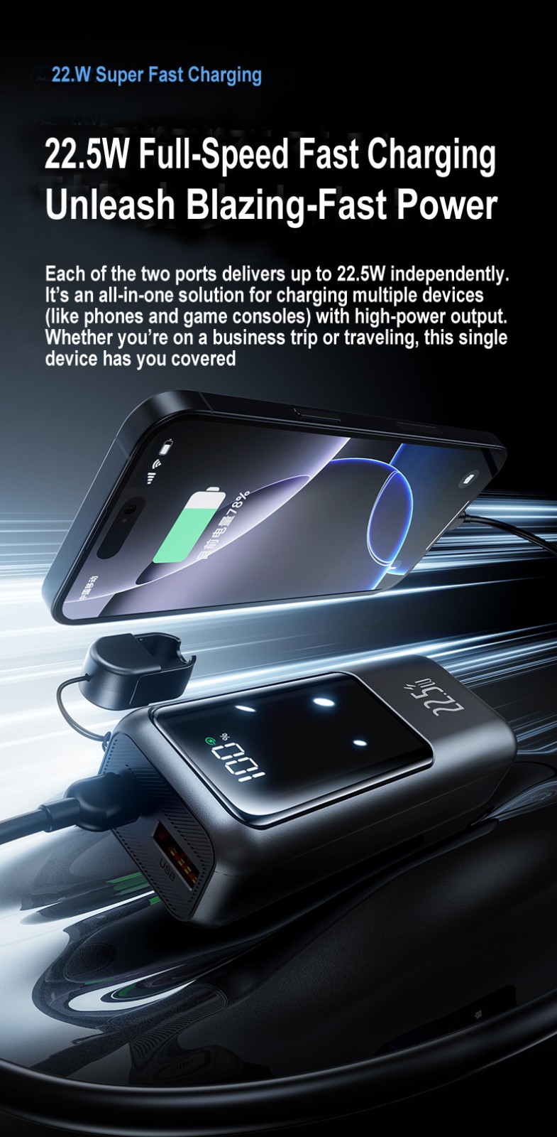 20000mAh Mini Power Bank, Large Capacity, 22.5W Super Fast Charging, Digital Display, Wholesale Phone Portable Charger