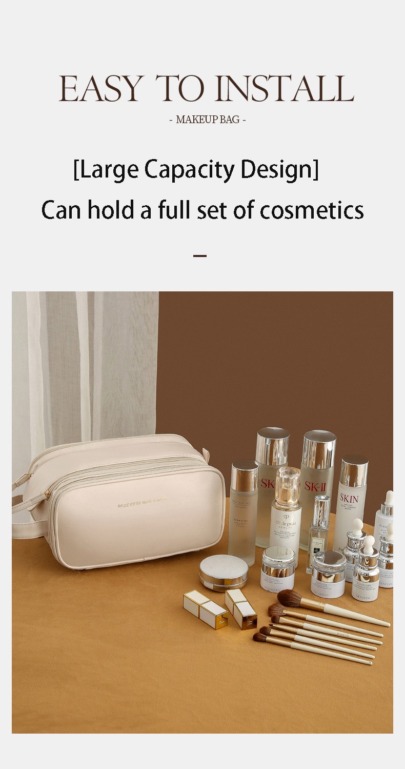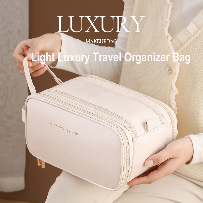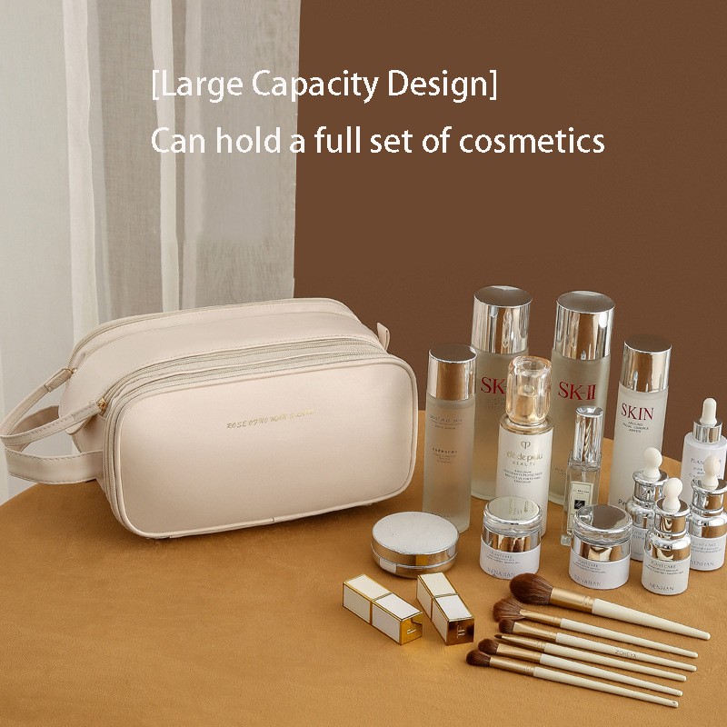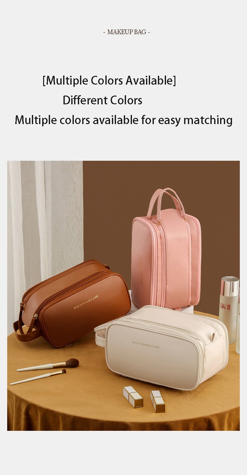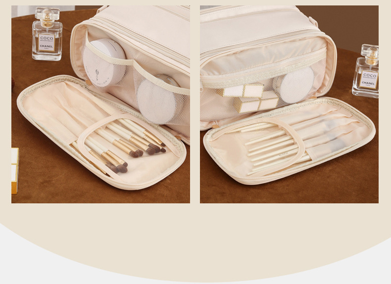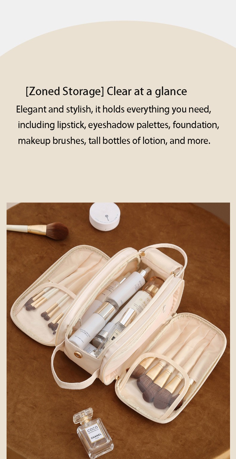 Large Capacity Women's Travel Makeup Bag with Brush Organizer, Portable Toiletry Storage Case