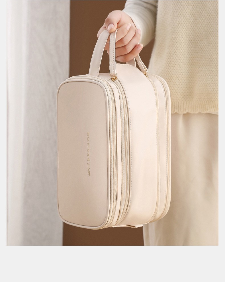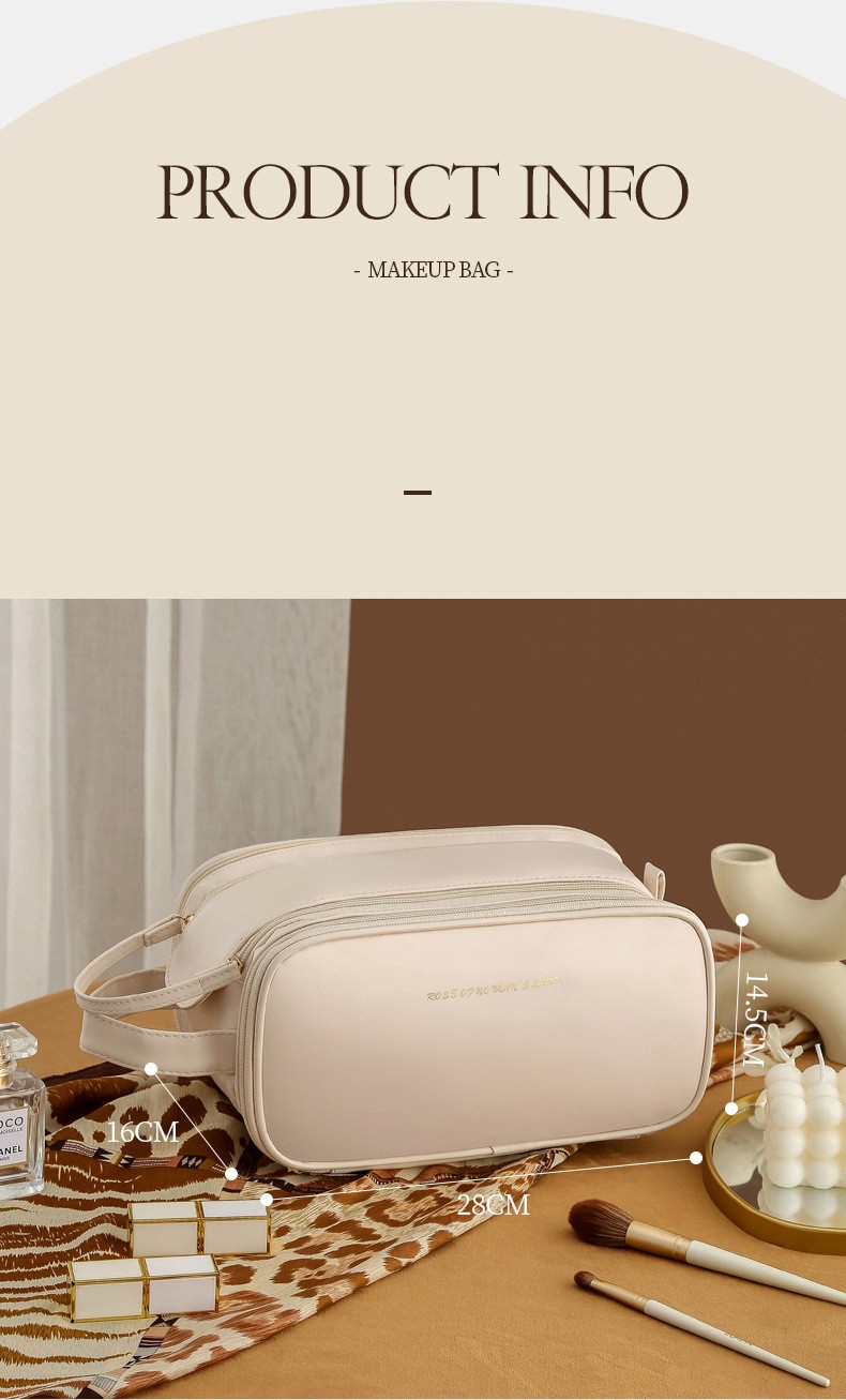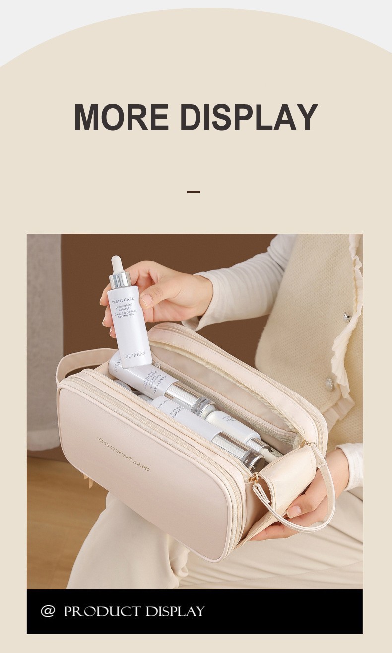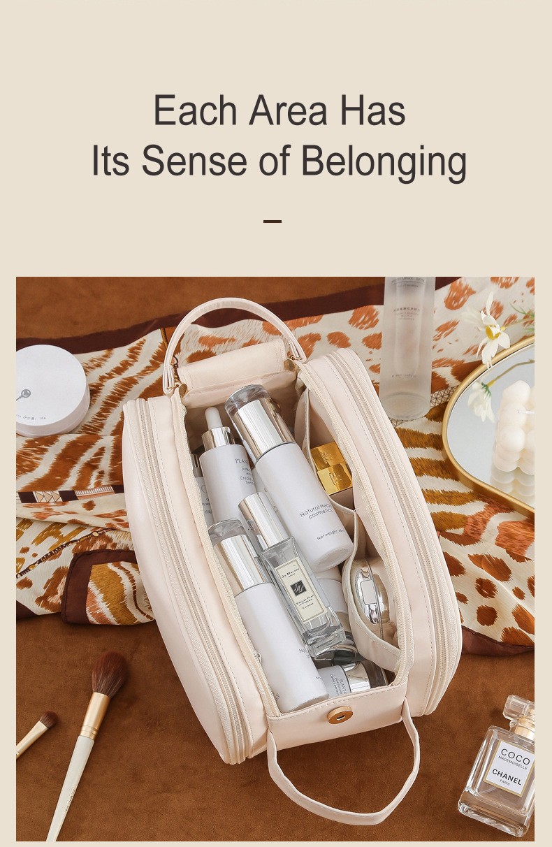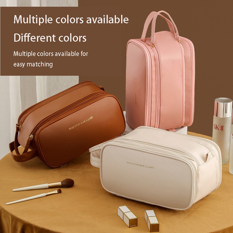 Large Capacity Women's Travel Makeup Bag with Brush Organizer, Portable Toiletry Storage Case