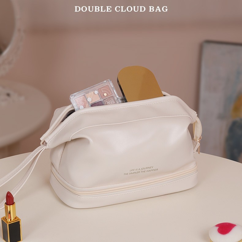 Large Capacity Double-Layer Cloud Shaped Cosmetic Bag, Portable Travel Evening Bag with Water-Resistant Makeup Organizer